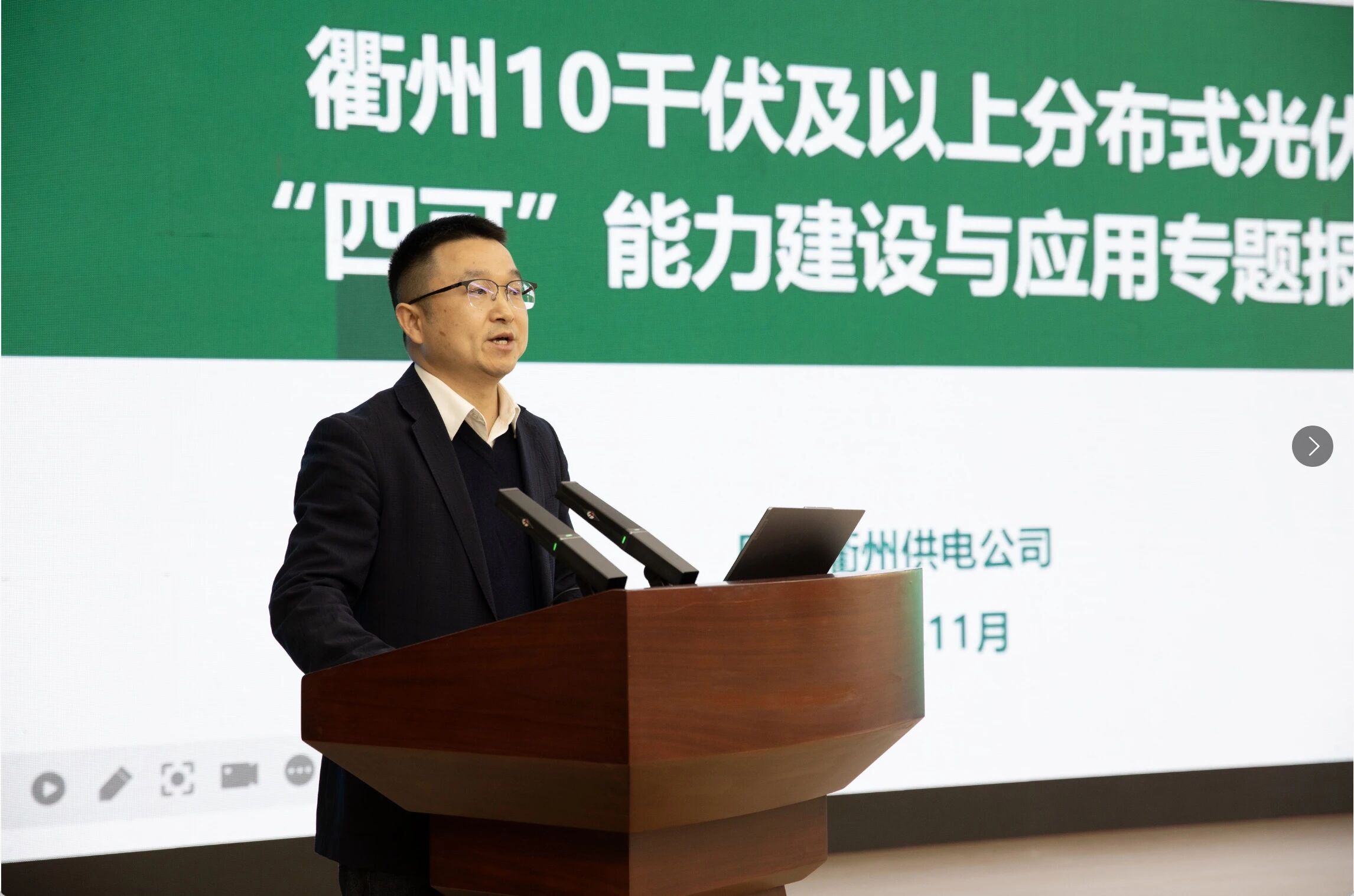 大会还安排了国网衢州供电公司谢永胜、吴俊飞分别作衢州公司光伏“四可”能力建设情况、“电压篇”探索与实践专题汇报。